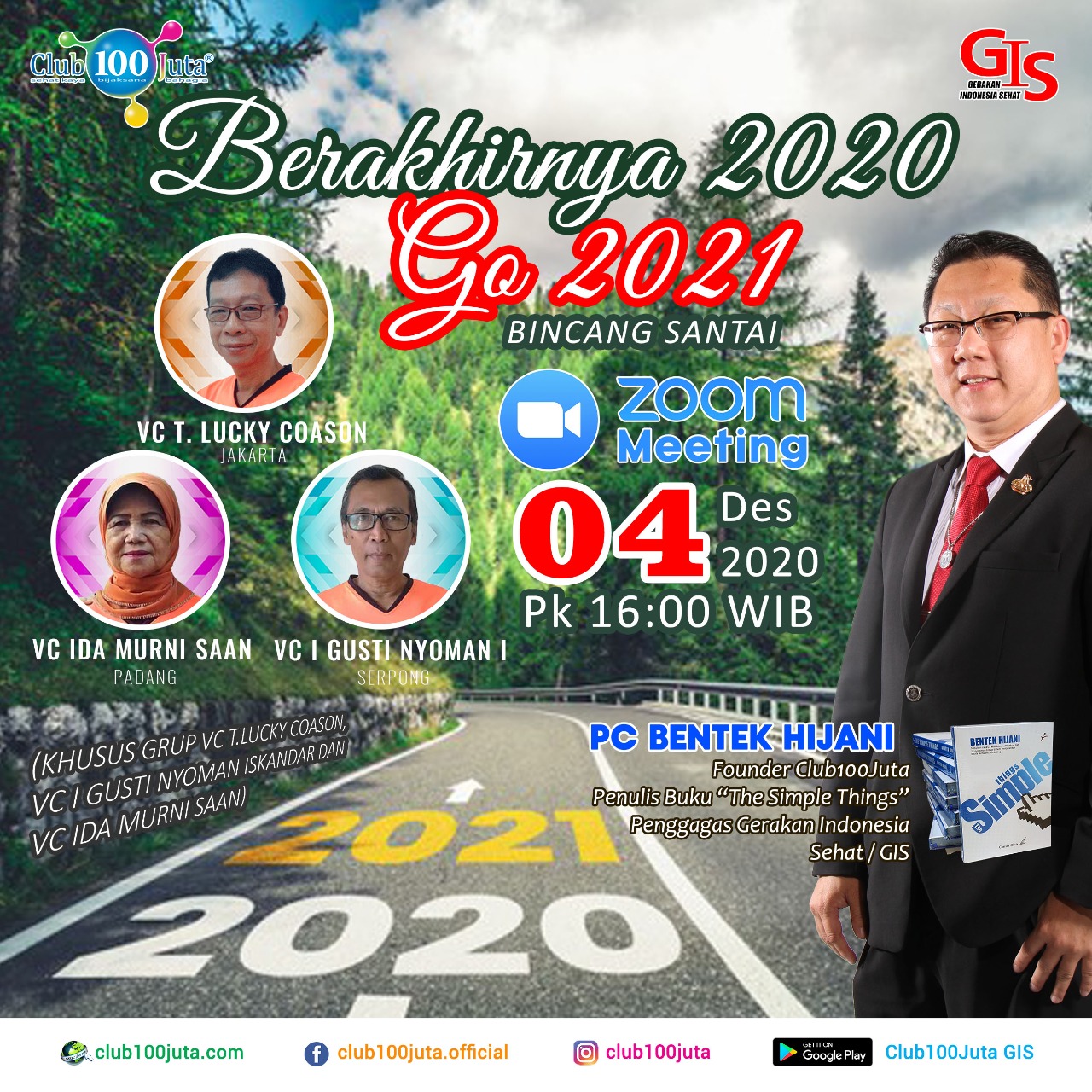 PT. Sejuta Keluarga Bahagia mengundang bapak ibu semua untuk acara khusus tatap muka dengan Top Leader kita yaitu PC bapak Bentek Hijani di Singapura melalui Zoom Meeting pada :