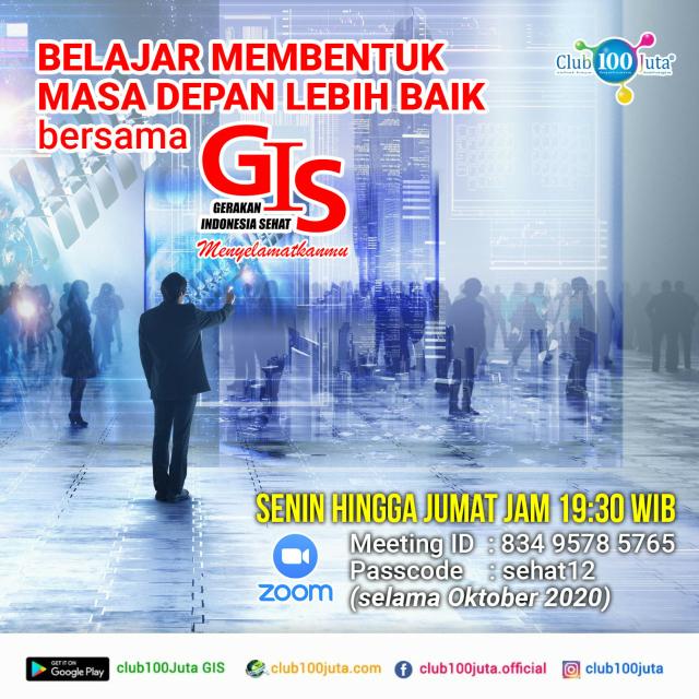 Yukkkk ikutan obrolan santai bersama para praktisi program hidup sehat untuk Belajar Membentuk Masa Depan yang Lebih Baik bersama Gerakan Indonesia Sehat melalui Zoom Meeting Setiap Hari Senin - Jumat jam 19:30 WIB / 20.30 WIT / 21.30 WITA
